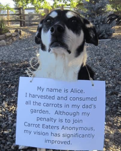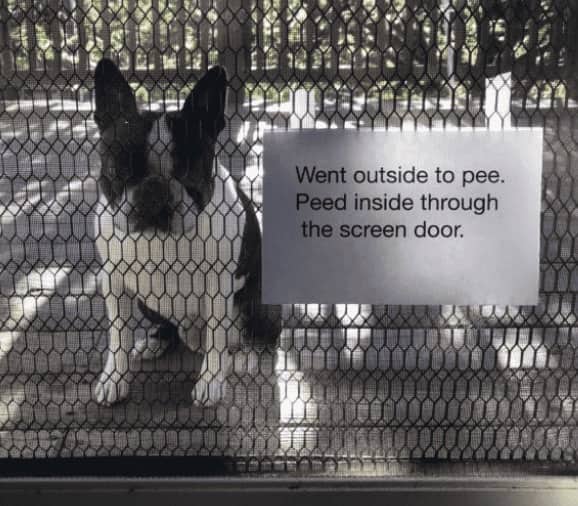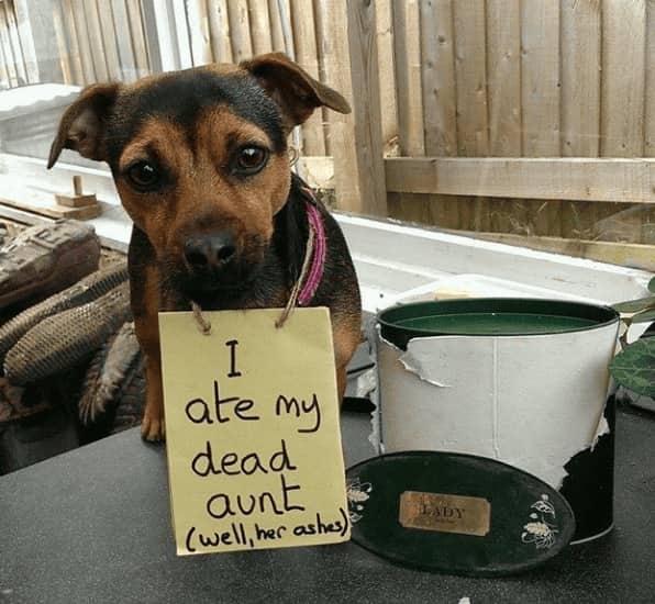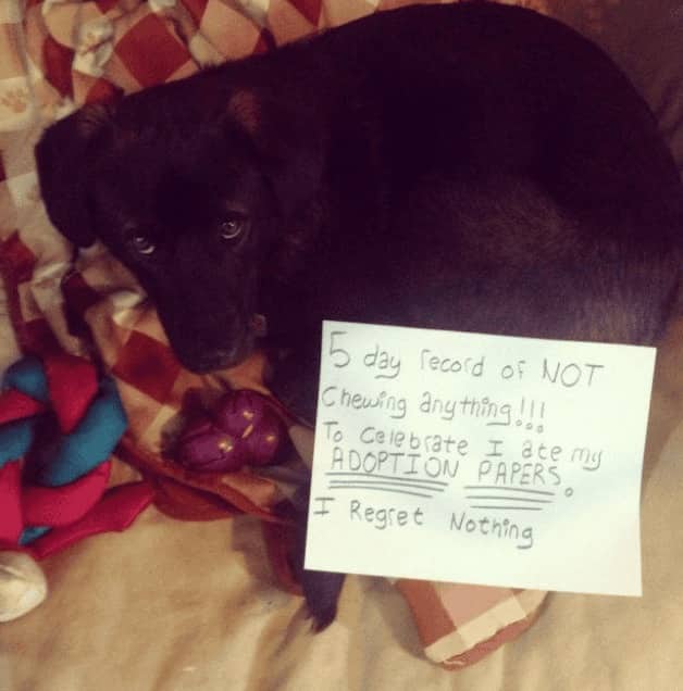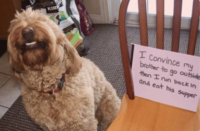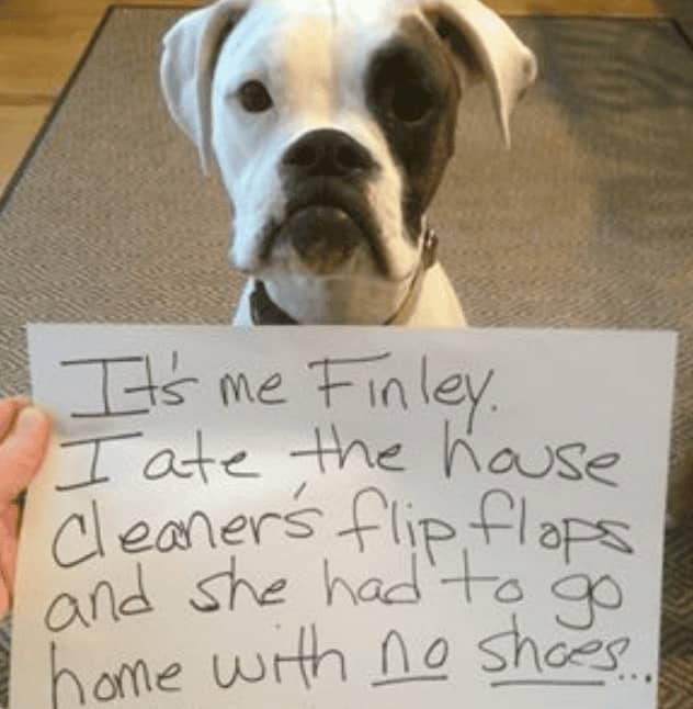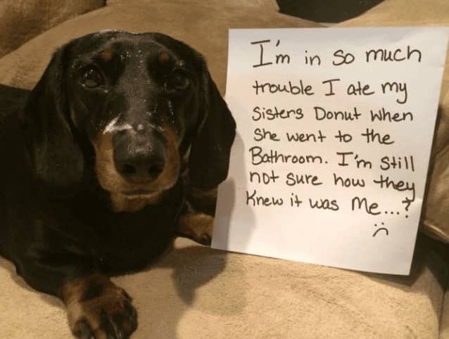 Funny dog shaming posts earn their circulation through a quality that distinguishes them from other pet content categories, which is the confession format. The dog is not simply photographed mid-crime. The dog is photographed with the crime documented in writing, held or hung in such a way that the animal’s expression can be read alongside the text, and the combination of the written confession and the face produces something that is both absurd and somehow completely believable. The German Shepherd who destroyed the screen door is wearing a sign. The sign describes the method. The face does not contradict the sign.