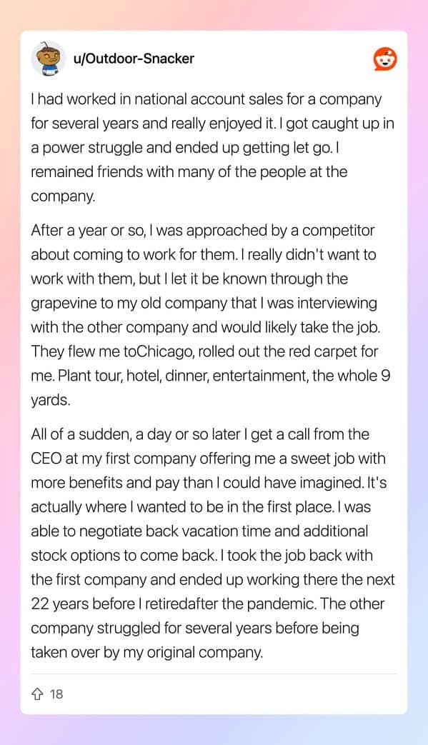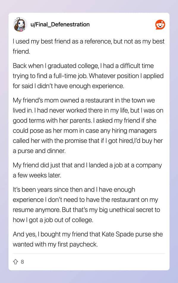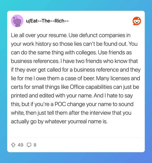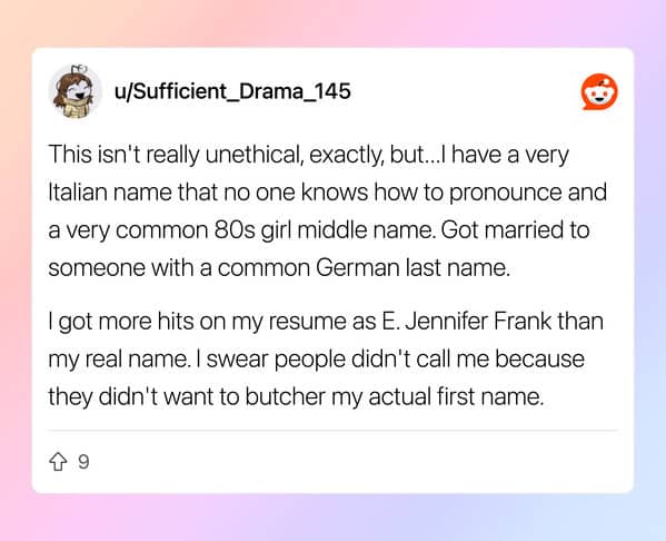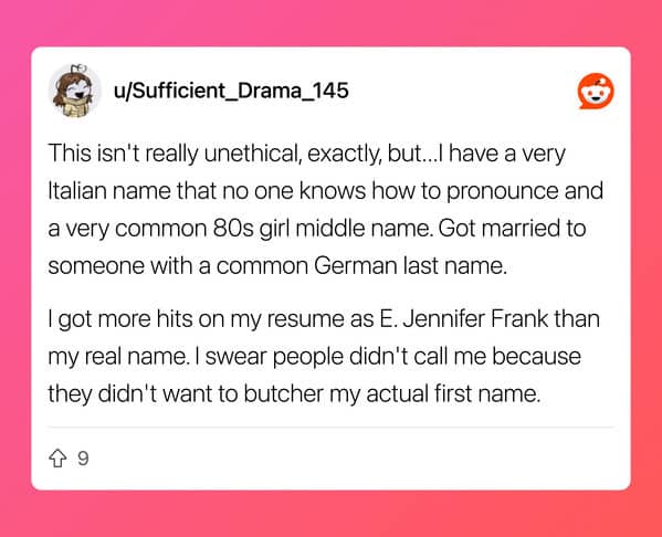What separates the tactics in this thread from ordinary career advice is the escalation arc. Copying keywords is a workaround. Opening a GitHub repo with five hello-world files is a shortcut. A fake competing offer letter that produces a 2x salary negotiation result and then evolves, within a single year, into a ten-company bidding war delivering a 6x raise is something else entirely. That is a person who identified how the game works, played it with increasing precision, and documented the journey with enough transparency that 1,200 people upvoted it and called it wisdom. The edit in the original post, the part where he notes that companies play games too, is the line that makes the whole thing land differently. He did not write the rules. He just learned to read them.The anglicised name entry is the thread’s quiet gut-punch, and it sits in this gallery because the thread labeled it a hack and the comments debated whether she was the one being unethical. Same resume. Same qualifications. Same person. Three weeks of callbacks versus eight months of silence, depending on which name was at the top of the page. That is not a clever trick for getting ahead. That is evidence filed in plain sight, and the hiring system has not addressed it, and the person who submitted the evidence got the job, and both of those facts are true simultaneously and deserve to be held there without resolution. The rest of the thread is funny. That entry is something the reader gets to decide what to do with.