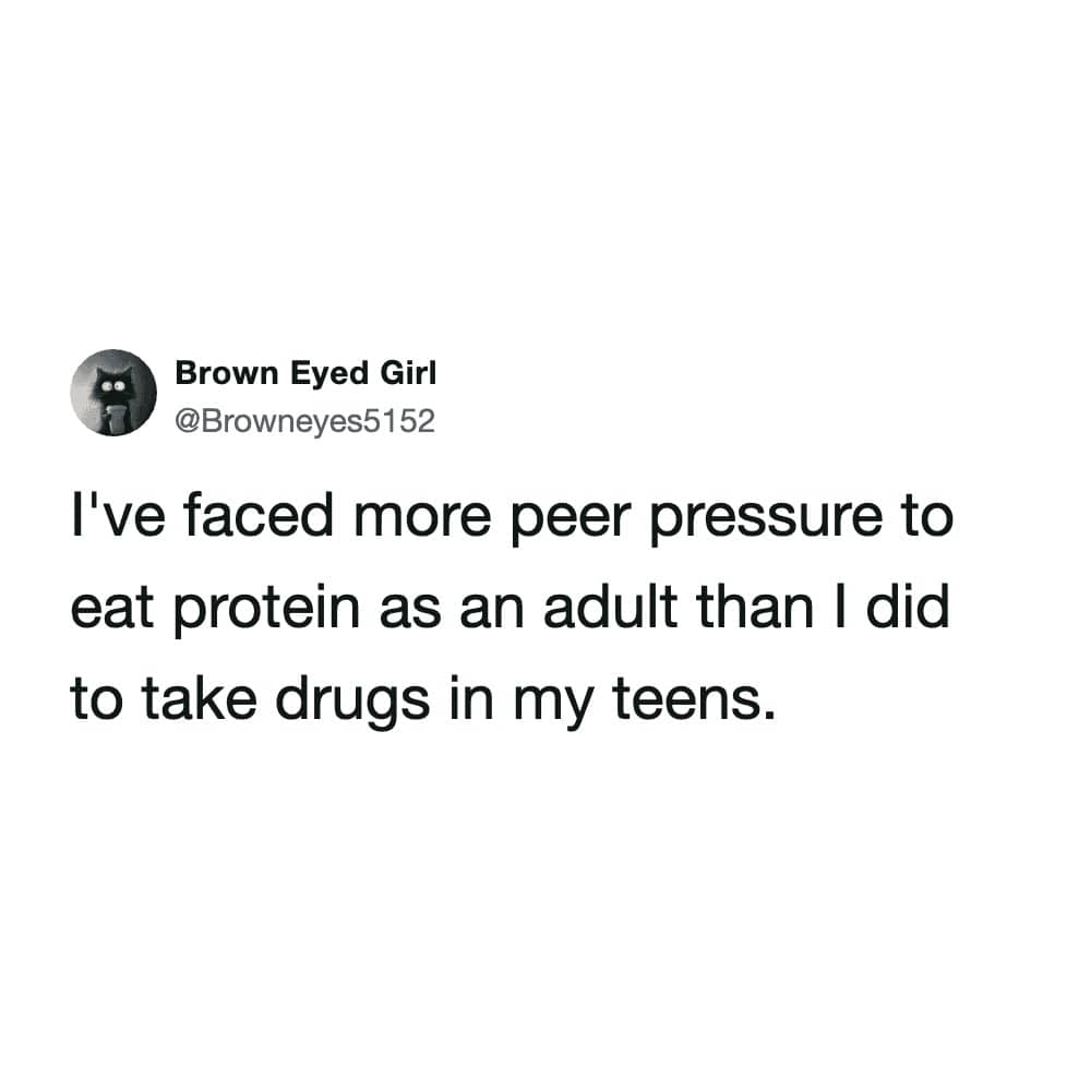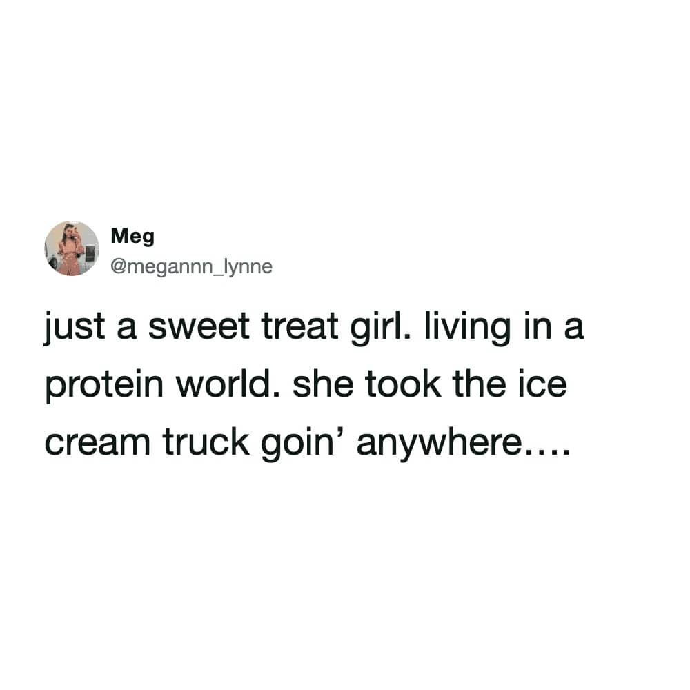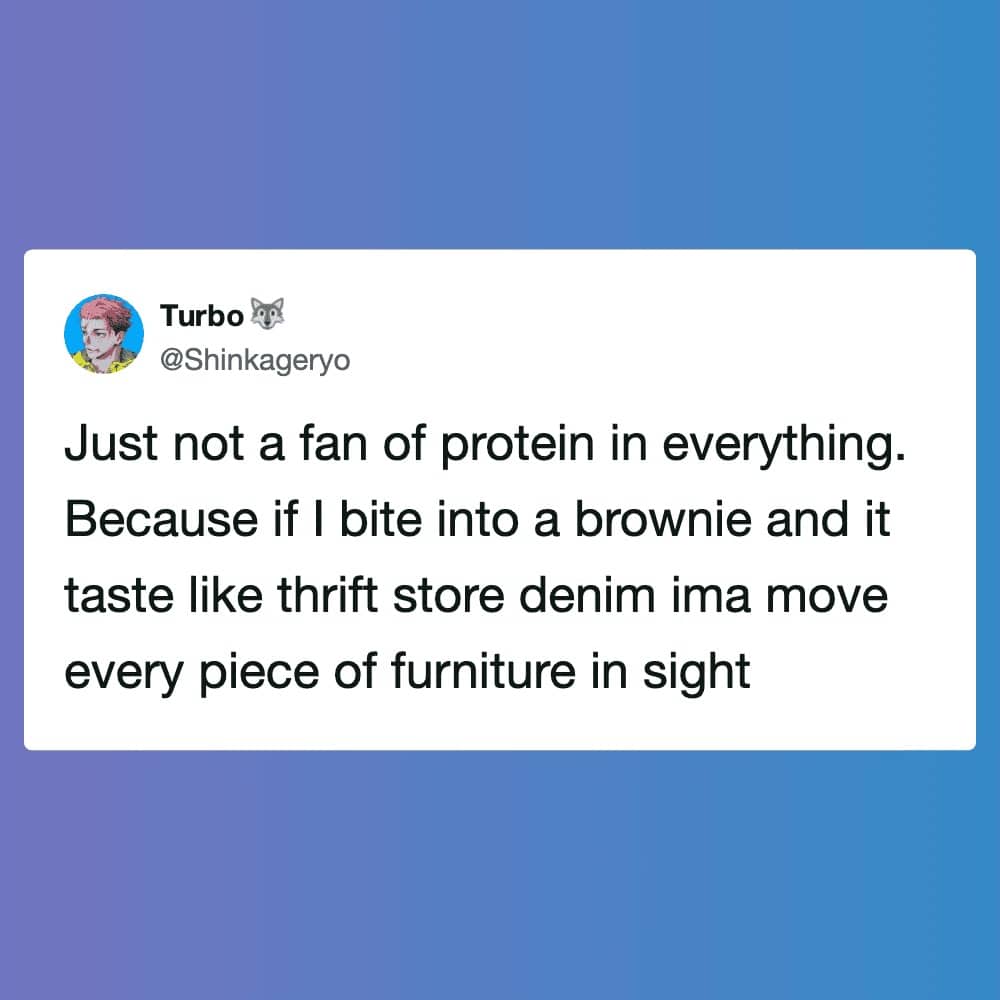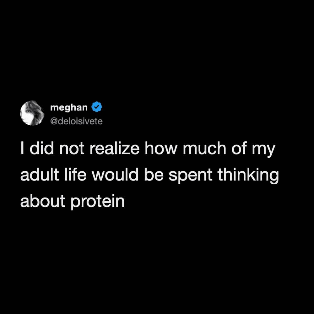 The universe really tests your gains sometimes, like when you spill a protein shake in your purse and realize your hygiene products are the only things keeping the liquid contained. It is a glamorous life we lead. These protein tweets are a reminder that no matter how jacked and hydrated we get, we are all still just people who want to eat cookies. We celebrate the struggle because the alternative is admitting that we spent two hours sitting in workout clothes just to hype ourselves up for a ten-minute session. Whether you are joking about the high cost of salad add-ons or questioning the whimsy of a protein bar, the energy is consistently exhausted. We laugh because we have all been there, staring at a nutrition label with genuine resentment. I hope these images make your next chicken breast go down a little easier. Just remember that if you cannot find the magic in your snack, you can at least find the humor in the timeline. Stay hungry, or don’t, because honestly, I am still too full from lunch.