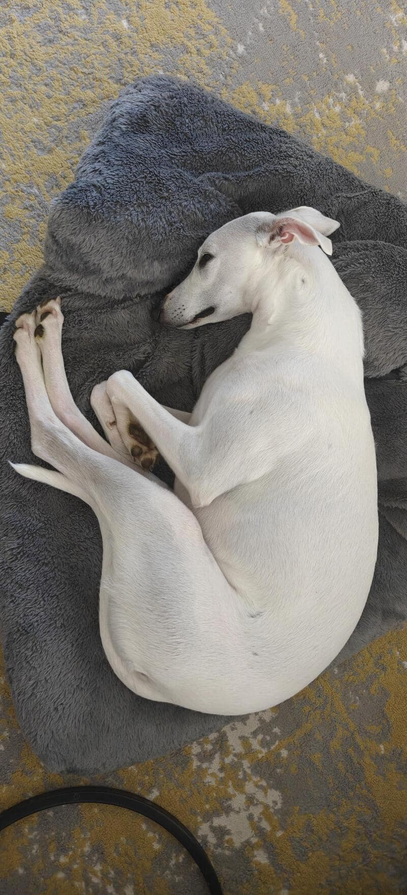 A funny dog sleeping a a weird position really going into shrimp mode.