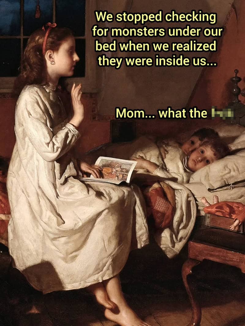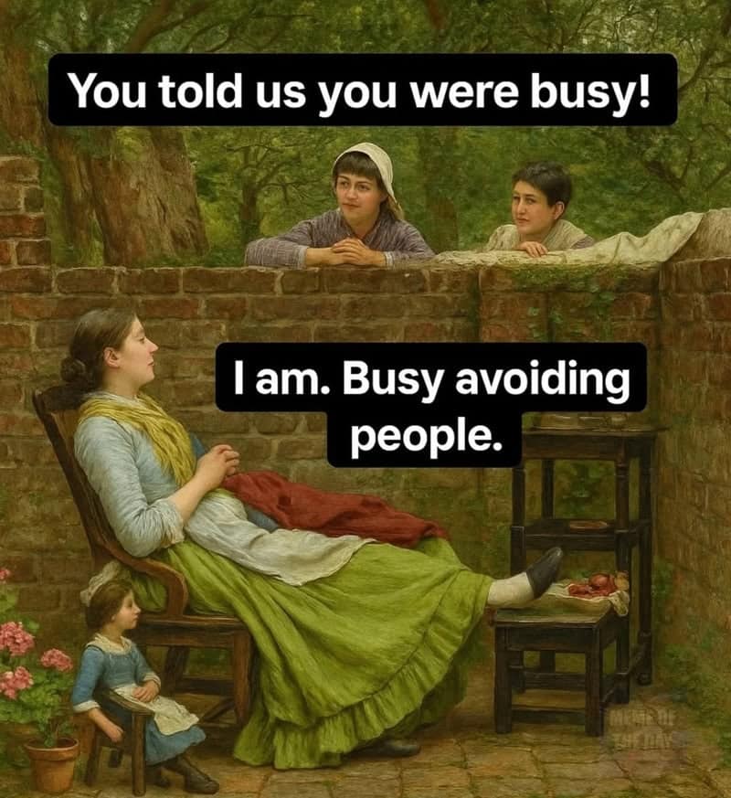 Classical art memes always make me feel like time is a flat circle and everyone across history was also overwhelmed, just with fancier sleeves. I was at the kitchen table this morning, coffee in hand, staring out the window like I was posing for a portrait titled Man Contemplates Email, and it hit me: we’re all living the same emotional plotlines. Have you ever looked at an old painting and thought, yep, that person is absolutely spiraling?