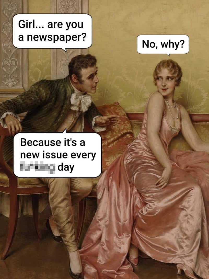 And the themes don’t change. Everyone’s still exhausted. Everyone’s still pretending they’re fine. People are still making questionable choices and then trying to act dignified about it. That’s why museum memes hit so hard: art history humor is basically a reminder that humans have always been messy, just in nicer outfits. Even the “romantic” scenes have the same energy as today’s dating advice: half optimism, half warning label.