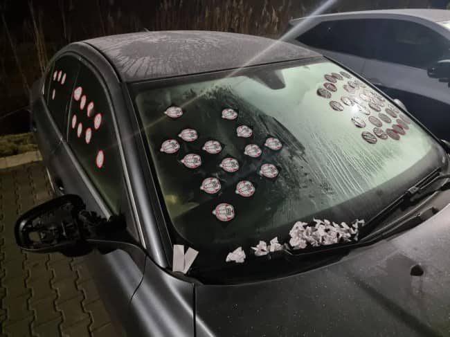 What the parking revenge category in this gallery reveals is that the social contract around parking is real, is deeply felt, and has a threshold beyond which people will build scaffolding. The Corsa owner had been warned. The warning was not heeded. The scaffolding arrived. This is, structurally, how most significant human interventions operate: a period of tolerance, a stated preference, a disregard of the preference, and then something permanent and load-bearing around the perimeter of the original offense. The pizza sticker car represents the same energy applied with a different material budget. Thirty stickers. Someone had thirty stickers and a plan and enough time to execute the plan completely. The parking job that prompted this response was probably a thirty-second offense. The response will be there when the car comes back.