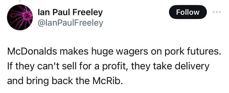 The pumped-in basketball squeak noises one is the one that genuinely changed me. I will never watch another game without imagining a guy in a sound booth with two damp balloons. That tweet ruined a perfectly good viewing experience and I love it. The lighthearted conspiracies are at their best when they introduce a doubt you cannot un-introduce. The squeak is now suspicious. Forever. Nothing else needed.