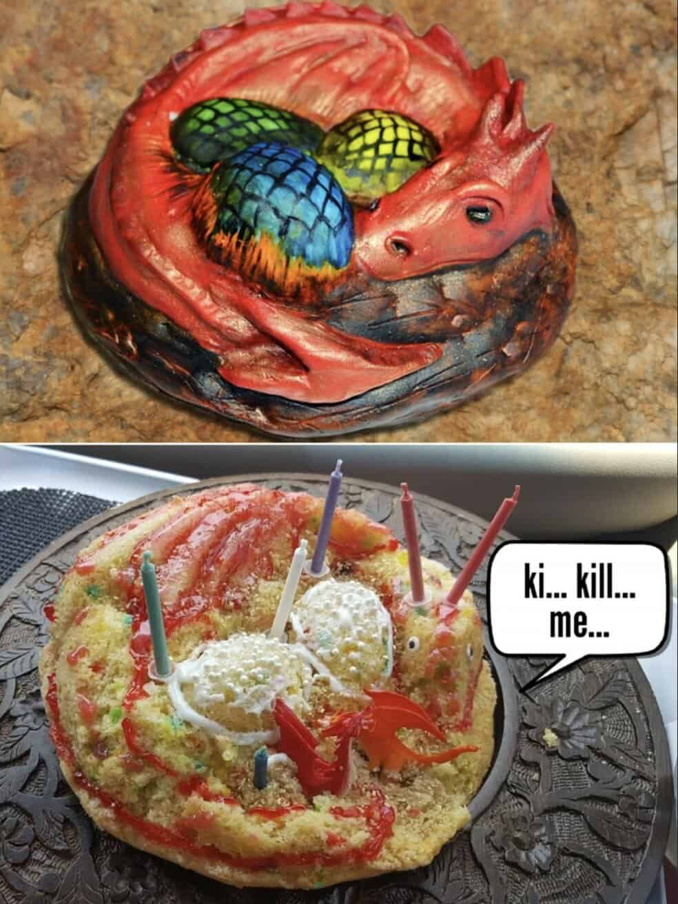 Scroll through 46 food fails, cooking disasters, meal expectation letdowns, and dinner dreams turned nightmares. Each side-by-side photo is a love letter to every burnt cookie, collapsed cake, and sad sandwich that looked better in the picture. You’ll see “gourmet” frozen dinners that would make Gordon Ramsay weep, home-cooked meals that never stood a chance, and bakery disasters that should be studied by scientists. These food memes perfectly capture the pain of recipe betrayal, the agony of following all the steps, and the dark art of pretending it “tastes fine” for Instagram. Get ready for a culinary roller coaster that’ll make you appreciate every edible meal you’ve ever had.